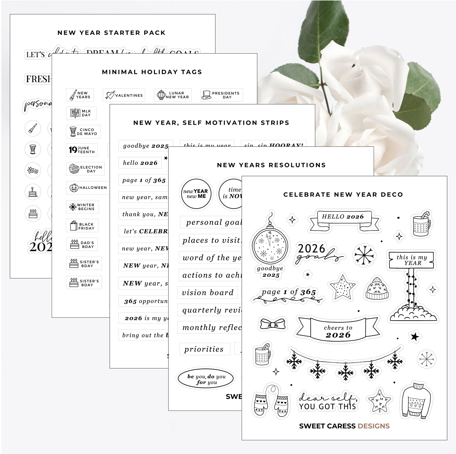 This listing consists of a total of 5 sheets. You can buy the whole collection or purchase by the sheet. These are perfect for any planner year round.